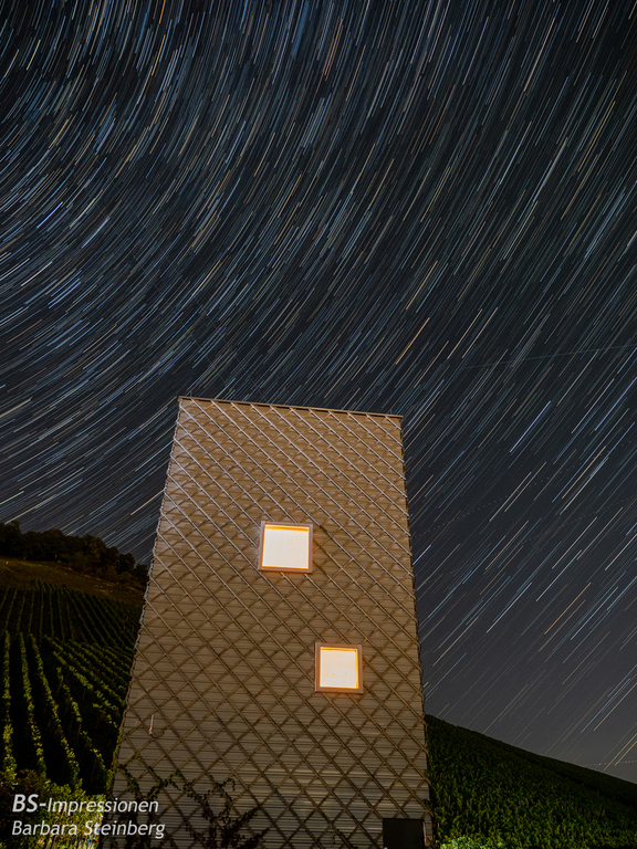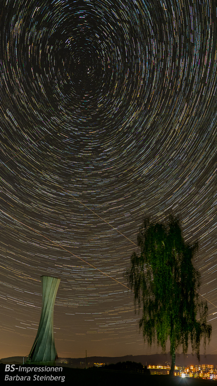 Startrails entstehen durch eine lange Belichtungszeit - durch die Erdrotation entstehen konzentrische Kreisbahnen. Mit dem Auge sind diese Startrails nicht sichtbar, durch mit Hilfe der Kamera können sie eingefangen werden. Die Intensität hängt von der Dauer der Belichtungszeit ab - hier heißt es, Geduld, Geduld, Geduld. Aber.... das Ergebnis lohnt sich.