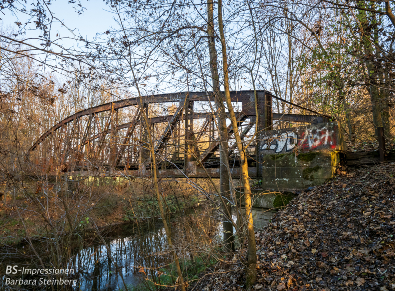 Mitten im Wald findet sich diese alte Stahlbrücke. Aber, nach der Brücke finden sich keine Schienen mehr. Nur das Gelände zeigt, dass offenbar hier eine Bahnstrecke verlaufen sein mag.